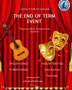 Dönem Sonu Konseri (8 Ocak 2025) Yüksekokulumuz bünyesinde 8 Ocak 2025 tarihinde Öğr. Gör. Erkan UYSAL ve öğrencileri tarafından “Dönem Sonu Konseri” etkinliği gerçekleştirilmiştir. Emeği geçen ve katılan tüm hoca ve öğrencilerimize teşekkür ederiz. 12 Ocak 2026, Pazartesi 21 kez görüntülendi